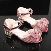 Groothandel Kinderschoenen Kids Mode Zomer Hakken Pailletten School Mooie Meisjes Strik Applique Verjaardagsfeestje Prinses Schoenen