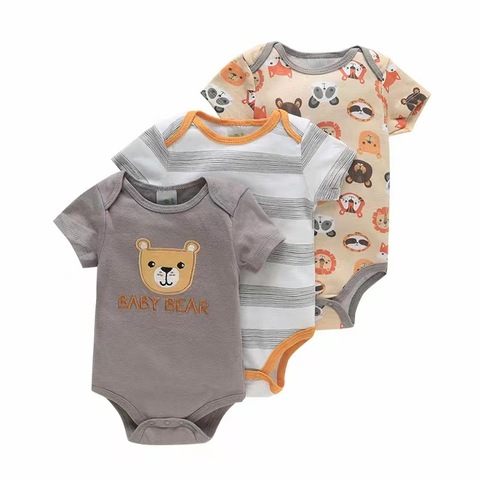 卸売混合新生児かわいい半袖春綿幼児男の子女の子在庫ロットロンパース3個セット