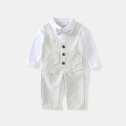 Vente chaude printemps bébé garçon rayé robe de cérémonie ensembles bébé garçon deux pièces vêtements ensembles garçon bébé Gentleman costume de Style britannique