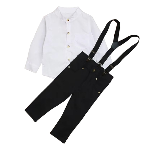 Toddler Boys Gentleman Style Party Dress Clothing Sets 2024 New Baby Boys Camisa Branca Preto Correias Calças 3pcs Boys Clothing Sets