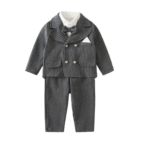 Hot Sell Primavera Bebê Menino Listrado Cerimonial Vestido Define Baby Boy Two Piece Conjuntos de Roupas Menino Bebê Gentleman Estilo Britânico Terno