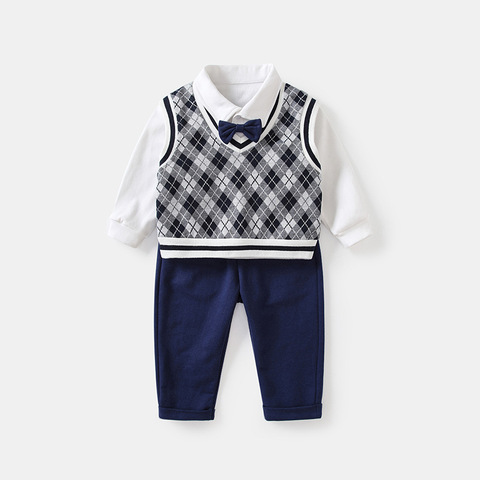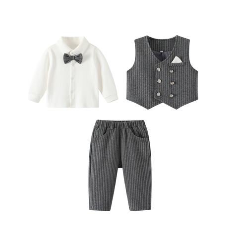 New Casual Confortável Meninos 3 Peça Terno Manga Longa Camisa + Colete + Calças Cavalheiro Elegante Para O Bebê Meninos Para Outono Conjunto de Roupas