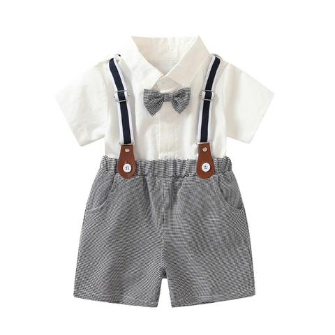 New Baby Boys Ternos Formais 2pcs Camisa Branca Macacão Shorts Recém-nascidos Crianças Roupas de Verão Outfits Boys Gentleman Clothing Set