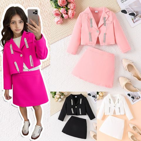Mode Lente Lange Mouwen Jas Rok Twee Stukken Set Kinderkleding Hot Verkopen Herfst Kinderen Effen Kleding Set