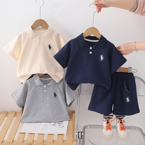 Katoenen Kinderen Jongens Dagelijkse Kleding Set Zomer Casual Baby Jongens Kleding Korte Mouw Polo T-Shirt Shorts 2 Stuks Kinderen Kleding Pakken