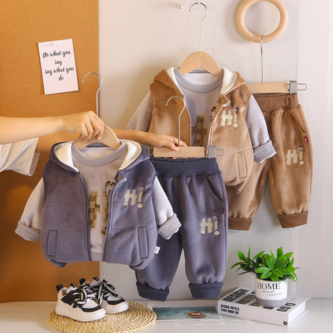Chàng Trai Mùa Thu Mùa Đông Quần Áo Ba Mảnh Thiết Lập Dày Áo + Vest + Quần Toddler Chàng Trai Bán Buôn Thời Trang Trẻ Em Trẻ Em Quần Áo Thiết Lập
