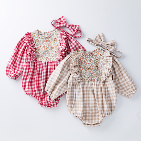 Ins heiß verkaufen Herbst Neugeborenen Overall Säugling Plaid Blumen Baumwolle lange Ärmel niedlichen Baby Stram pler für den Frühling
