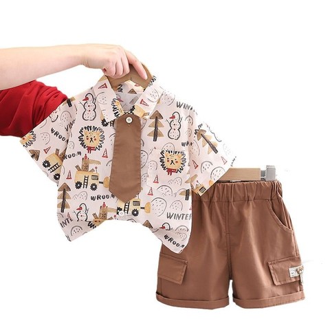 Garçons costume d'été 1-5 ans bébé garçon dessin animé chemise à manches courtes deux pièces enfants décontracté ensembles de vêtements pour enfants