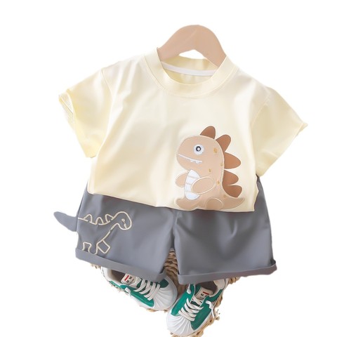 2025 लड़कों 1-6 साल पुराने ग्रीष्मकालीन ठोस रंग डायनासोर छोटे छोटे सूट स्टाइलिश बच्चे के नए कार्टून दो-टुकड़े कपड़े