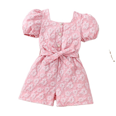 Летний комбинезон для девочек, новый От 7 до 14 лет 2024, одежда для подростков, одежда для девочек, короткий комбинезон с цветочным узором и рукавом-пузырем, одежда для маленьких девочек
