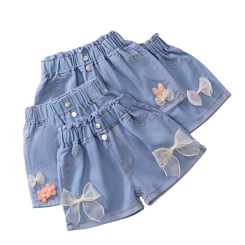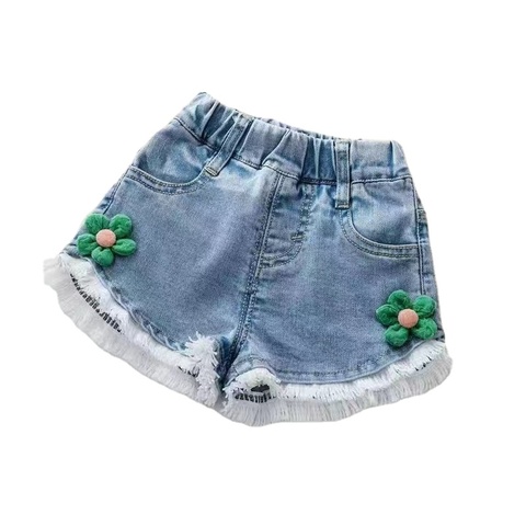 Летние новые модные джинсовые шорты 2024 девочек в иностранном стиле с бахромой цветы Детские шорты джинсы брюки