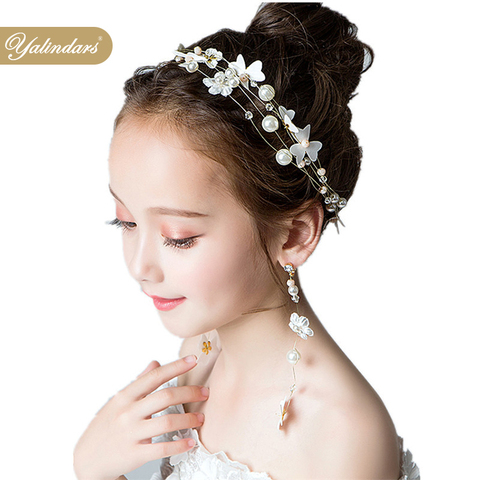 새로운 디자인 소녀 머리띠 공주 꽃 왕관 꽃 진주 웨딩 티아라 귀걸이