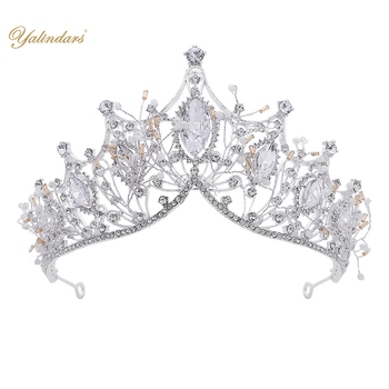 여왕 크라운 수제 골드 웨딩 티아라 신부 크리스탈 라인 석 머리띠 키즈 헤어 액세서리